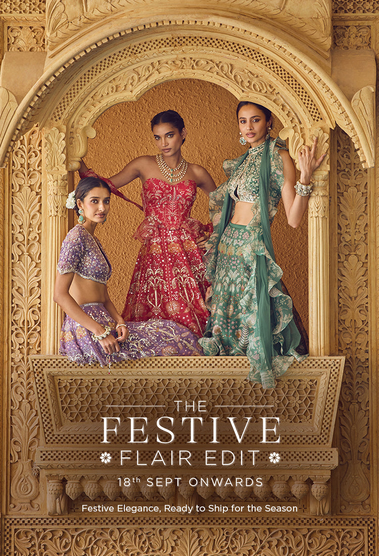 Known for graceful pre-draped sarees that redefine convenience, flowing lehengas that whisper of heritage, and chic shararas, ghararas, and anarkalis, the brand presents a curated collection of couture and demi-couture pieces designed for movement and comfort.