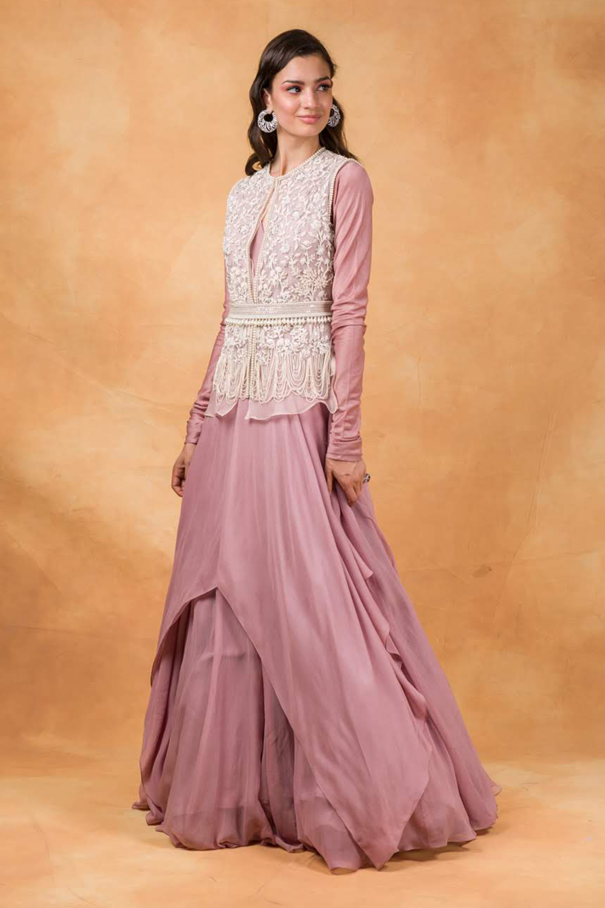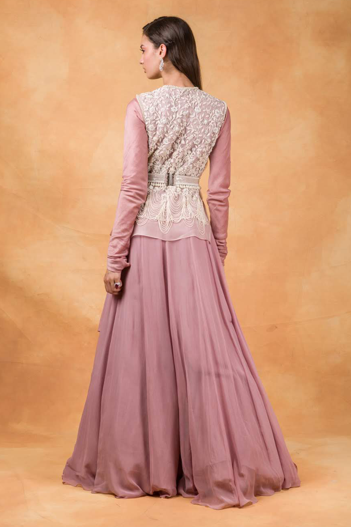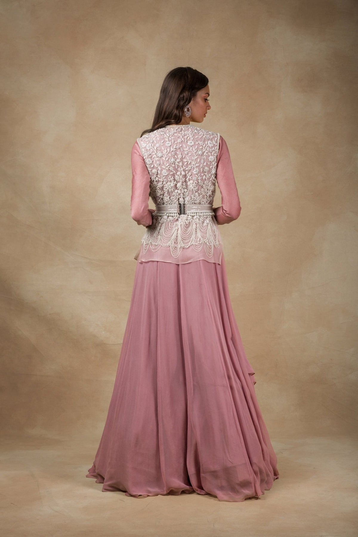 Pearl Embroidered Jacket with a Draped Anarkali and Embellished Pearl Belt