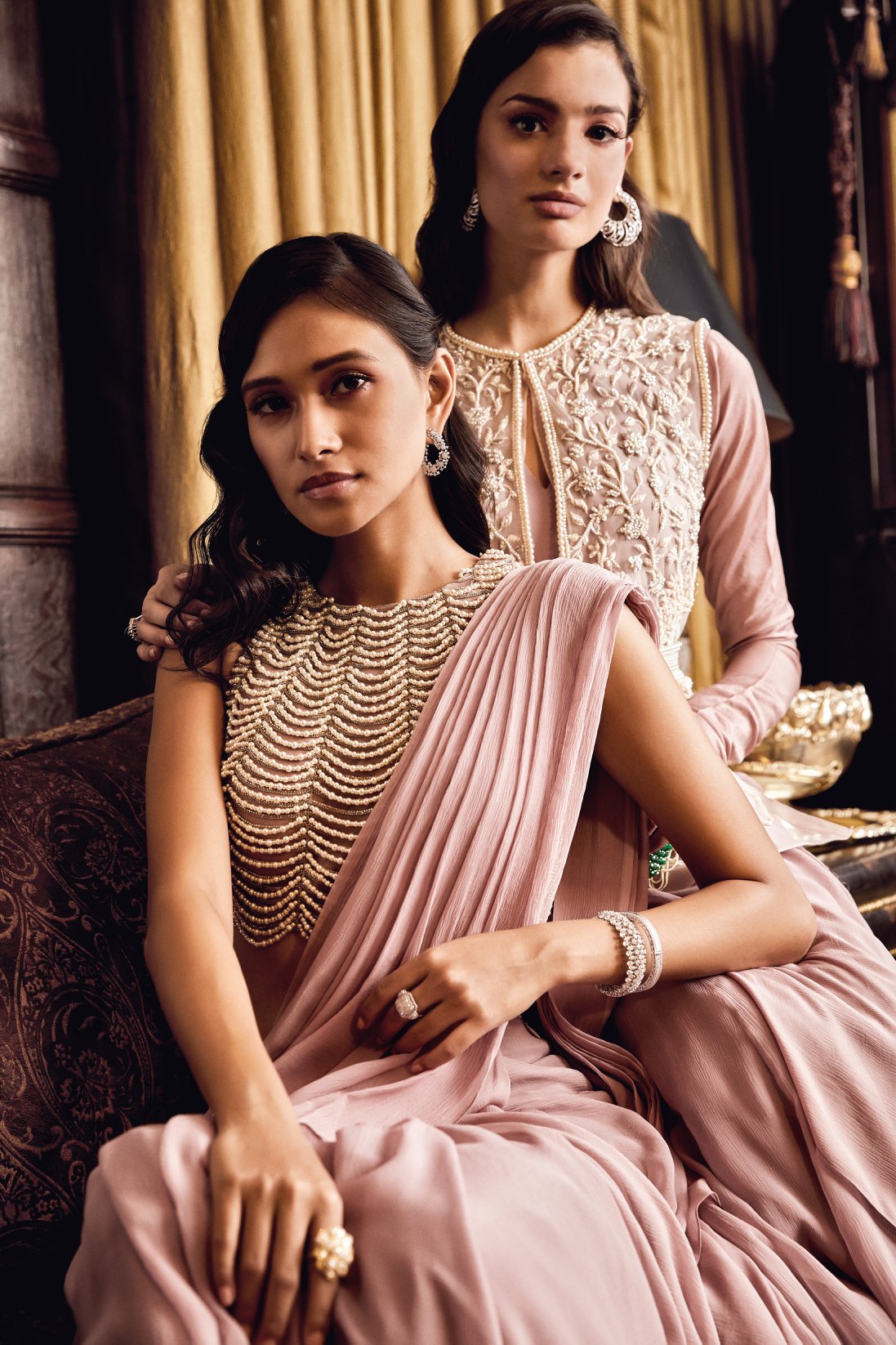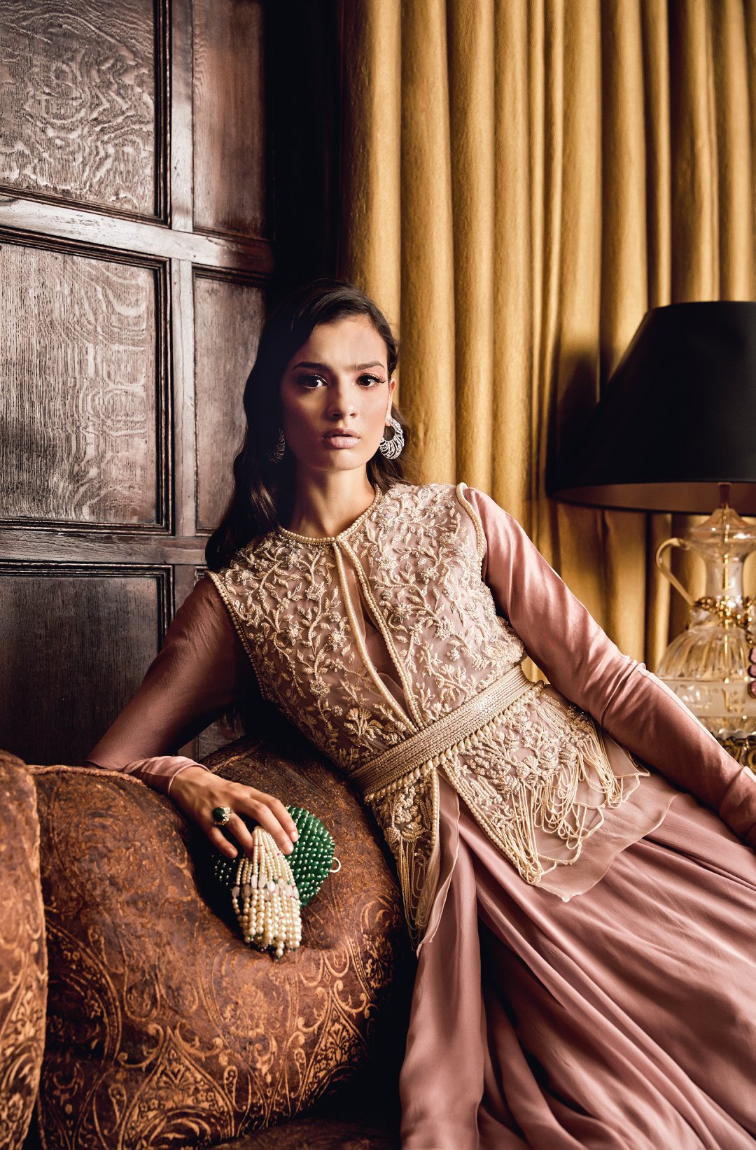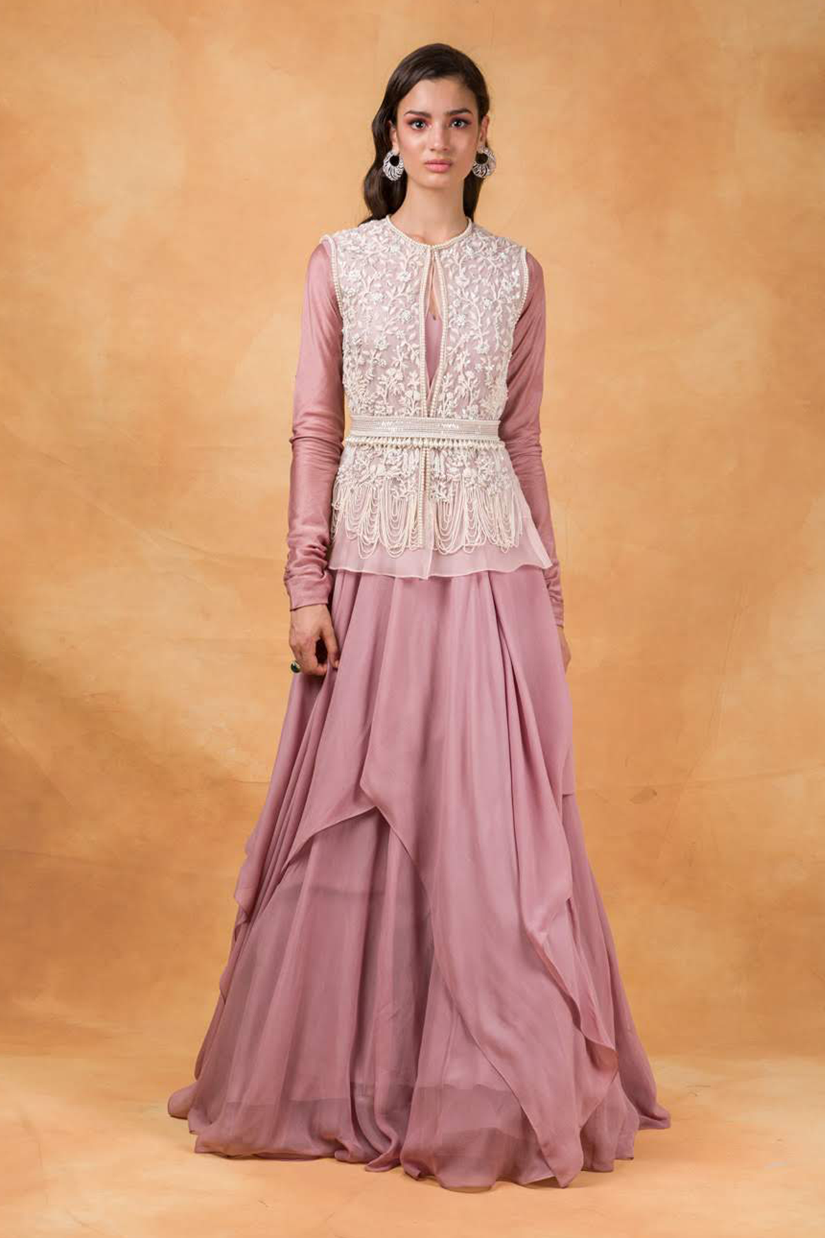 Pearl Embroidered Jacket with a Draped Anarkali and Embellished Pearl Belt