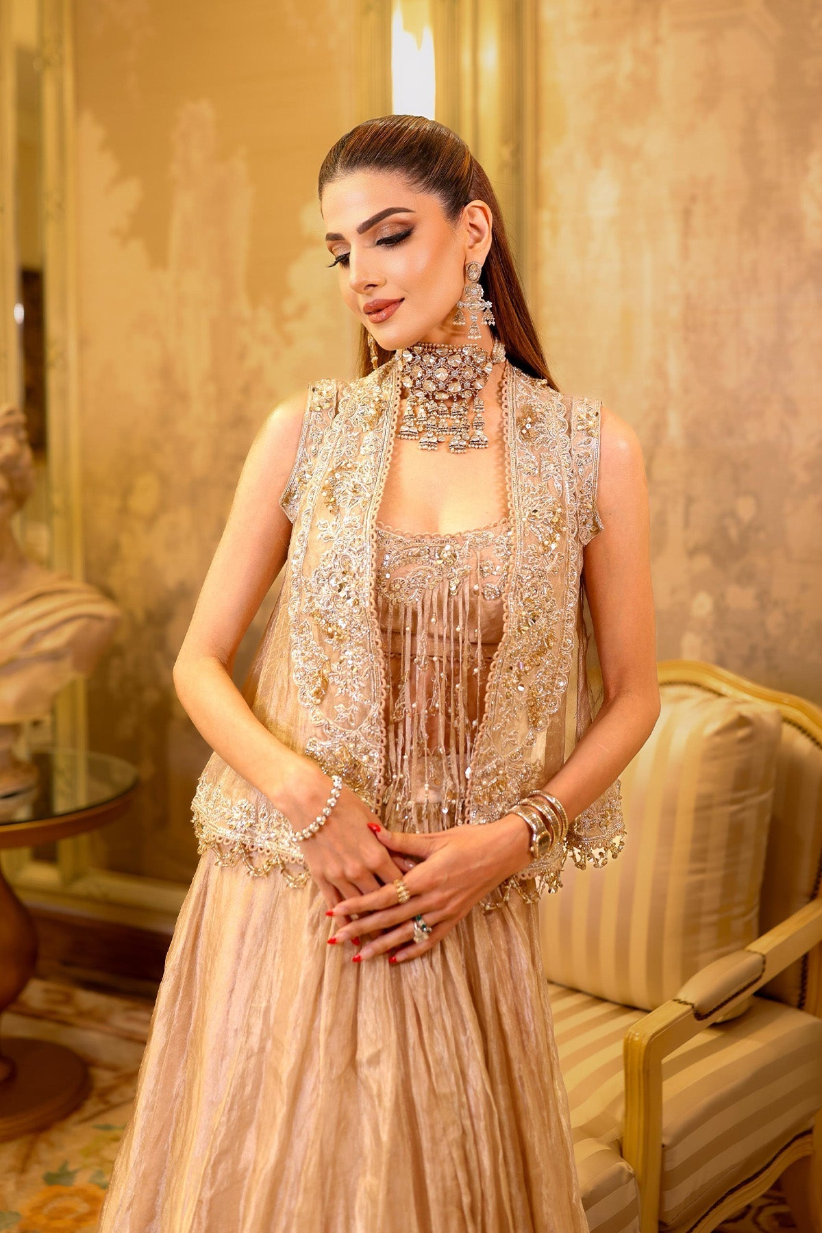 Fabric: Blouse: Tissue, Lehenga: Tissue, Short Jacket: Tissue