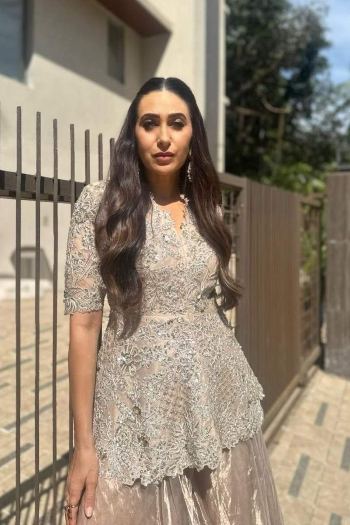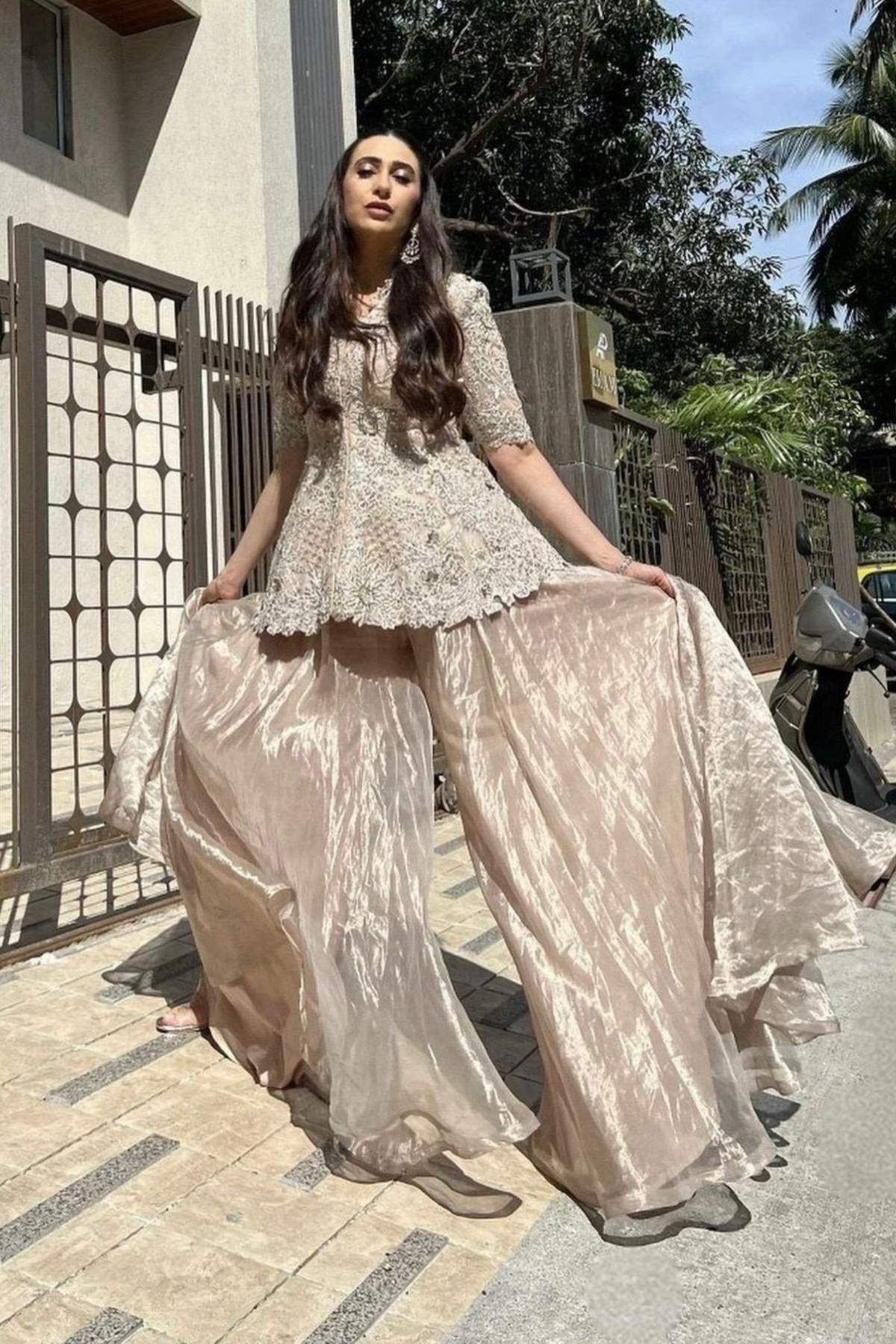 Champagne Net Full Embroidered Peplum With Tissue Flared Sharara