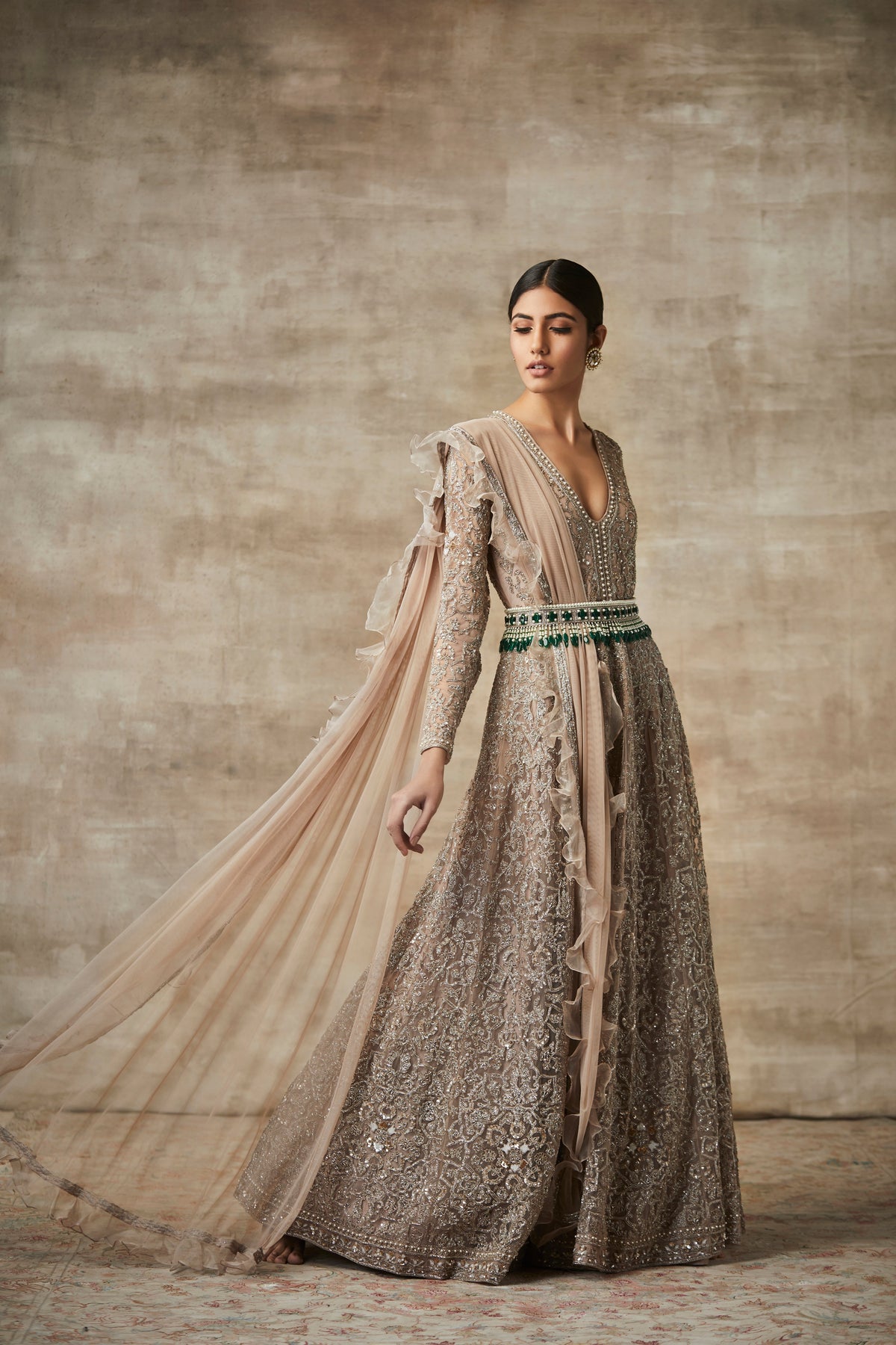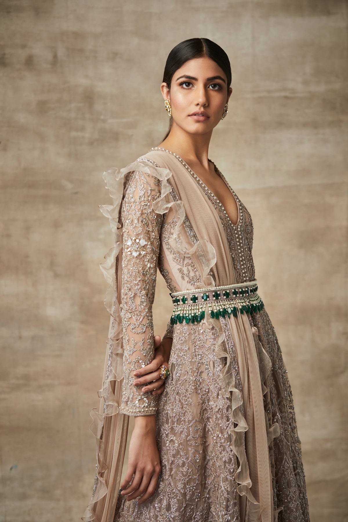 Embroidered Anarkali with net embroidery  ruffle dupatta