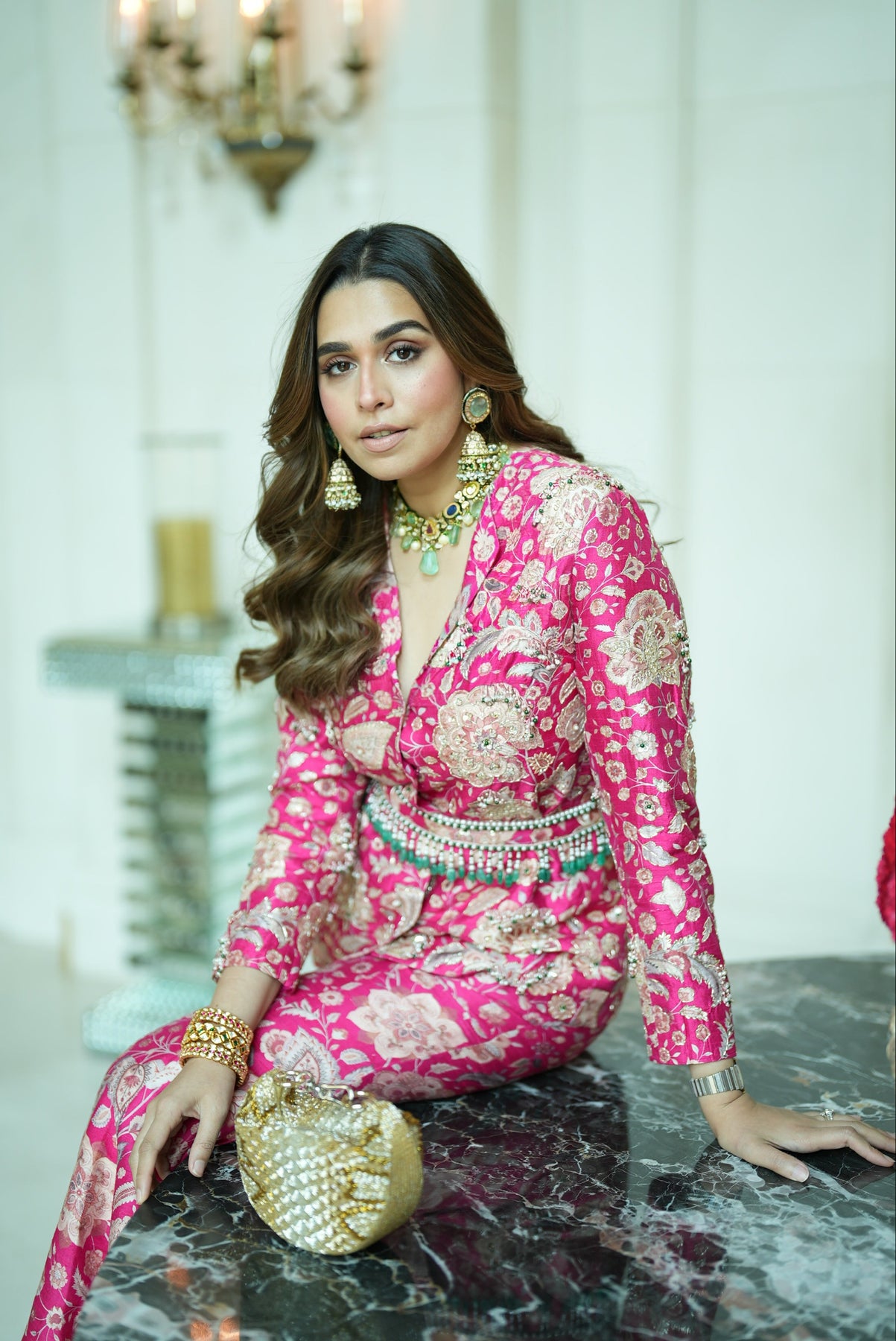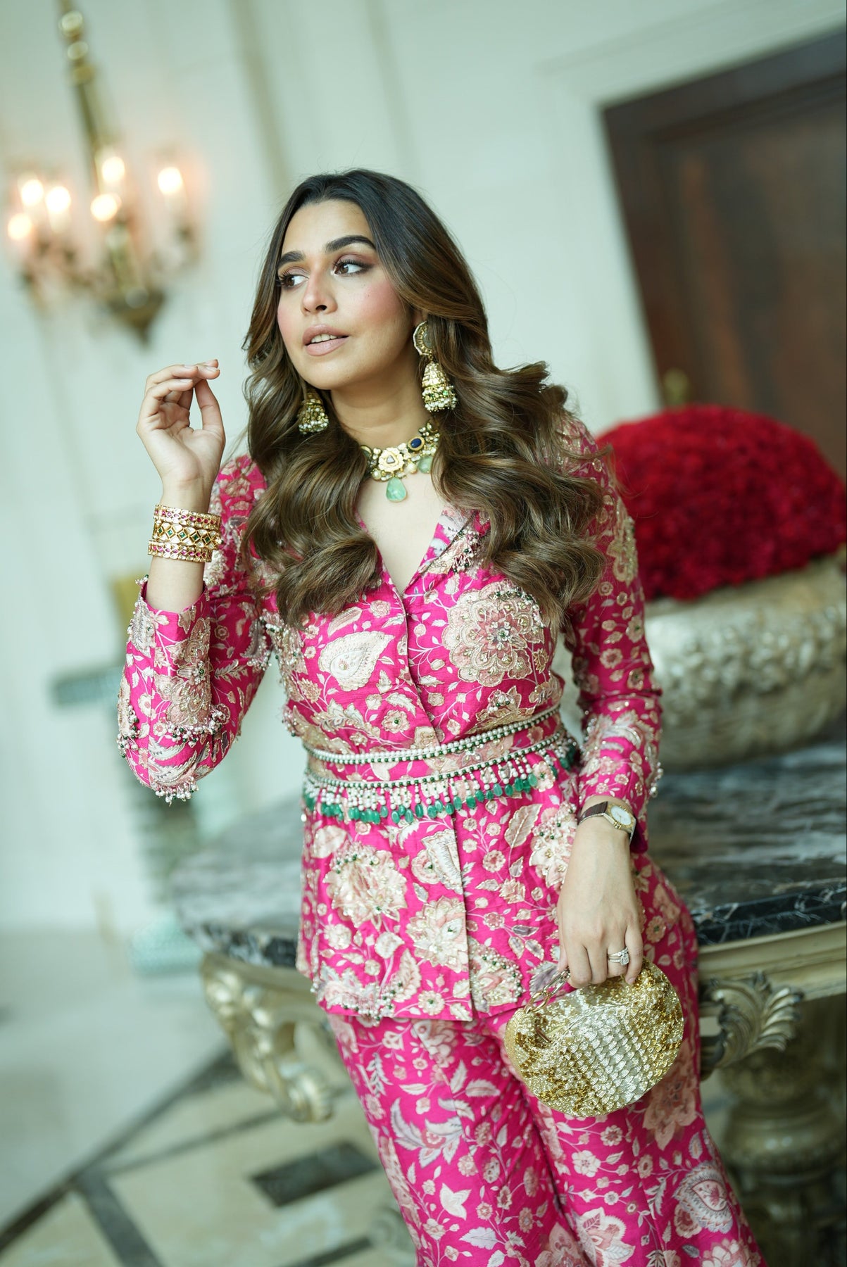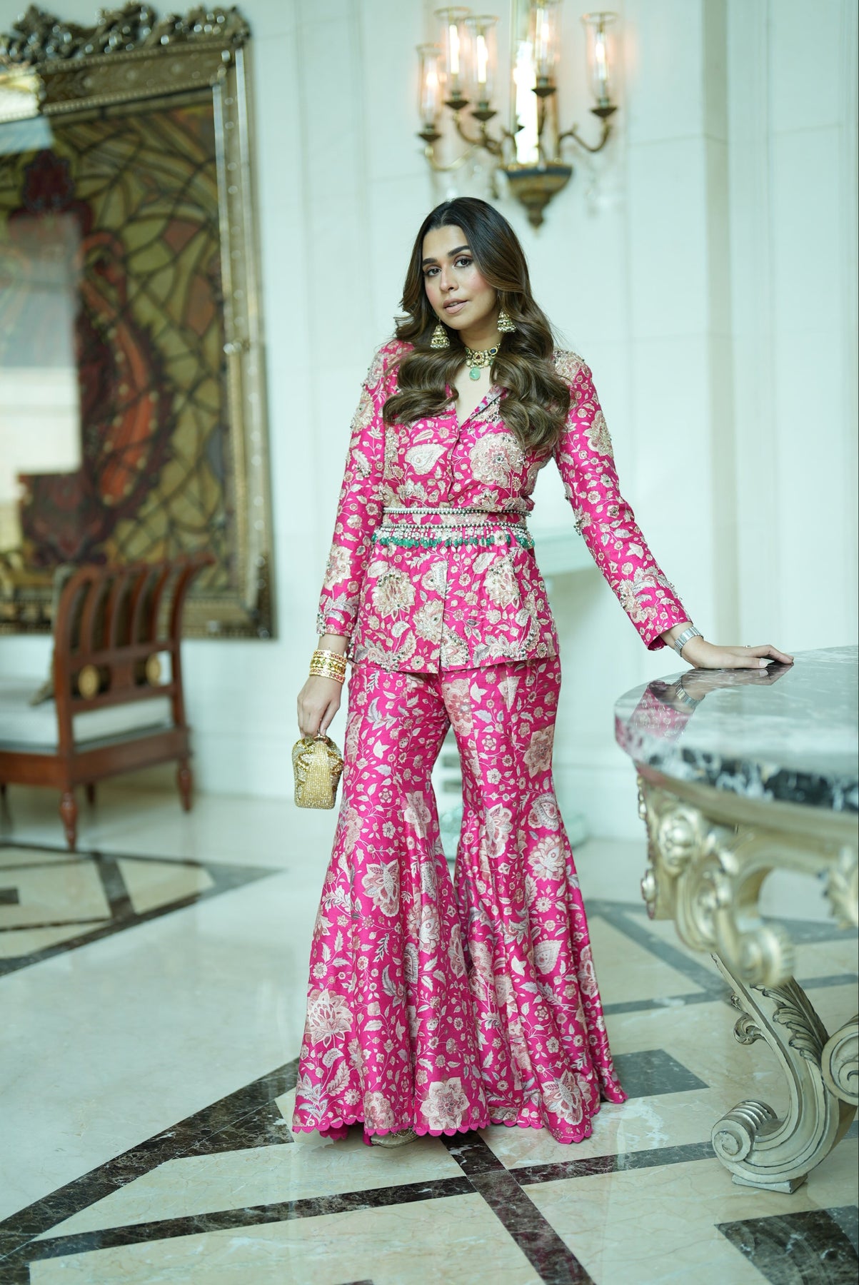 Fabric: Jacket : Printed Raw Silk Pants : Printed Raw Silk Belt : Printed Raw Silk