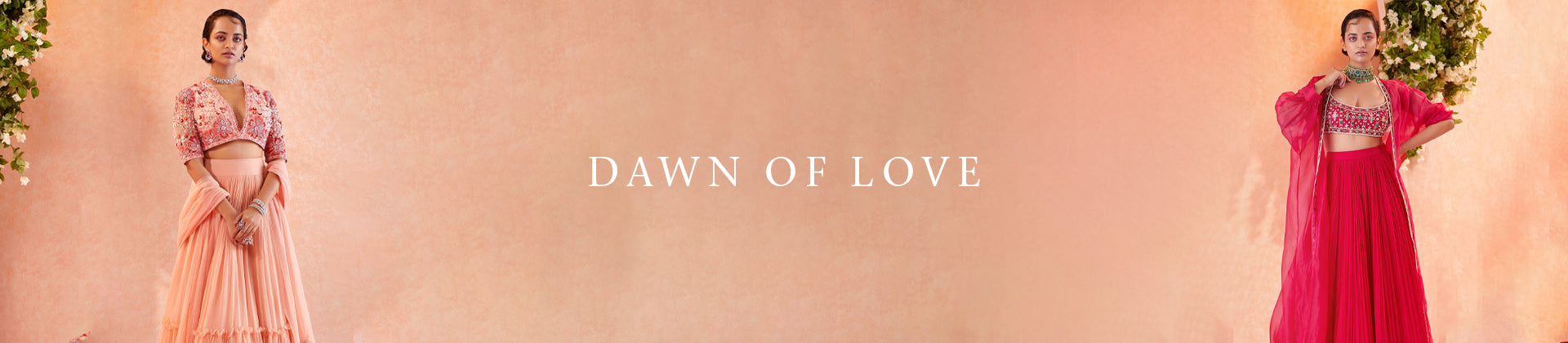 An amalgamation of Ridhi's signature style, a palette of both plush and sublime hues, abstract prints and timeless threadwork, Dawn of Love has been mindfully fashioned for the women of modern India - forever discovering, evolving, resilient, eloquent and ethereal.