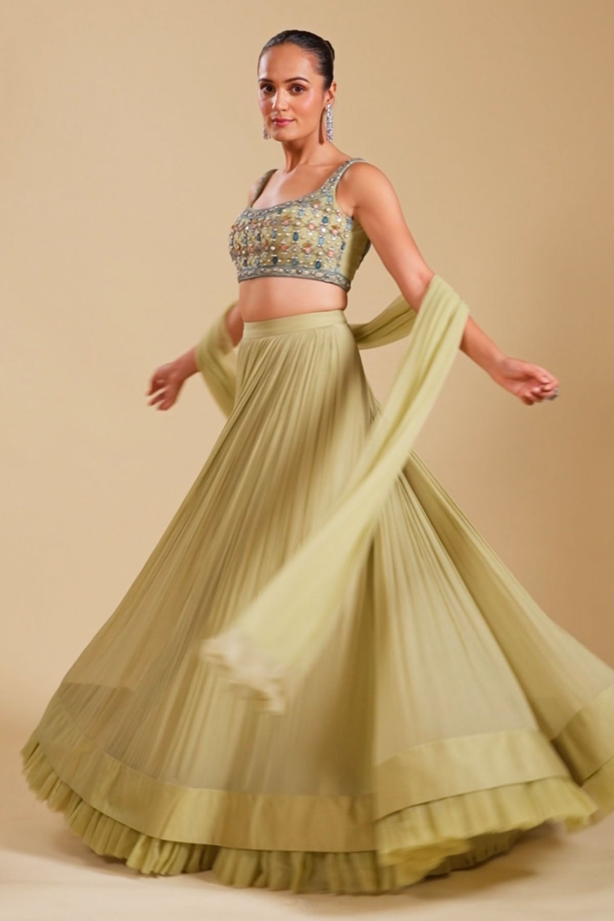Fabric: Blouse - net, Skirt - Chiffon, Jacket - Organza