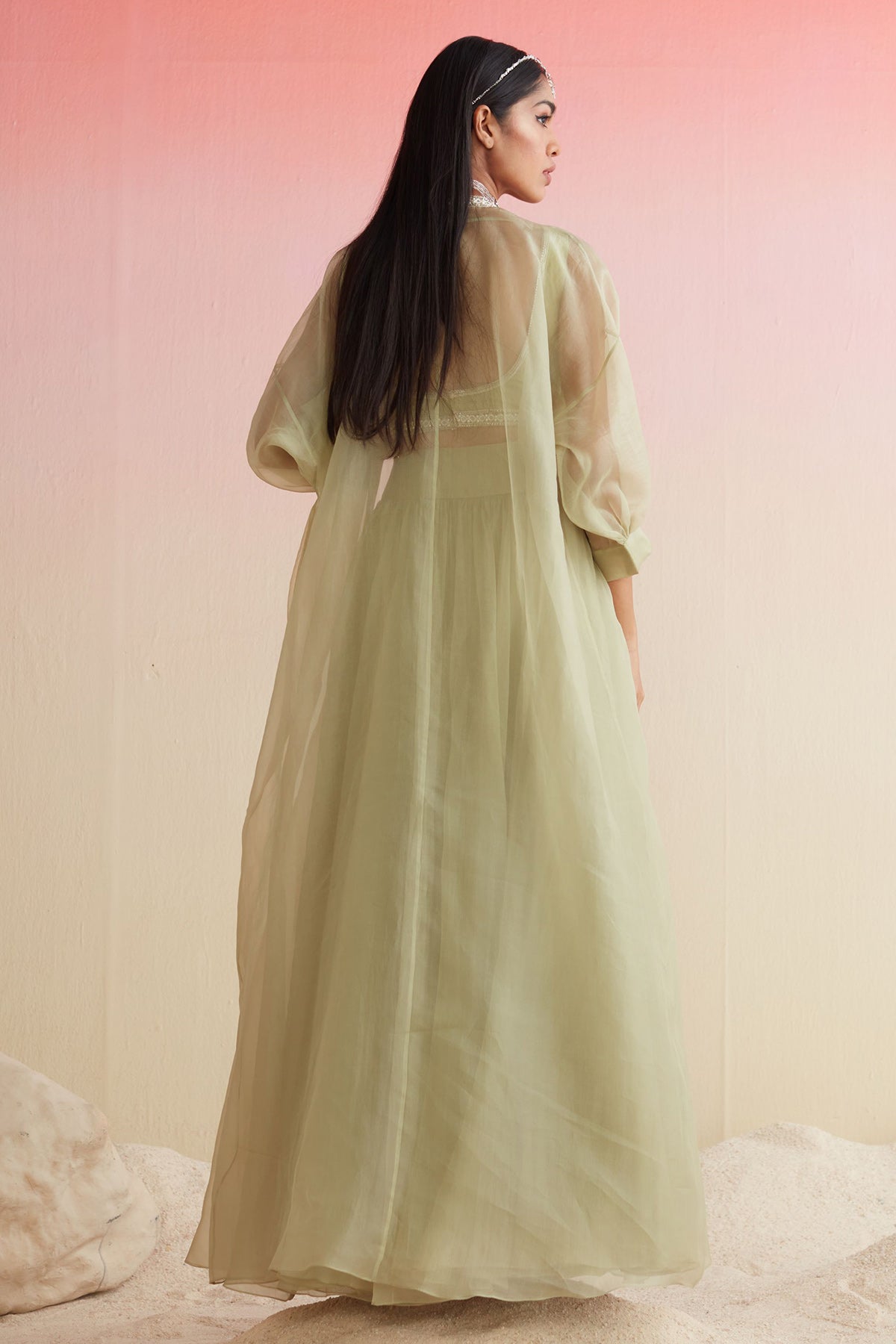 RIDHI-MEHRA-MINT NET EMBROIDERED BLOUSE WITH PLAIN ORGANZA