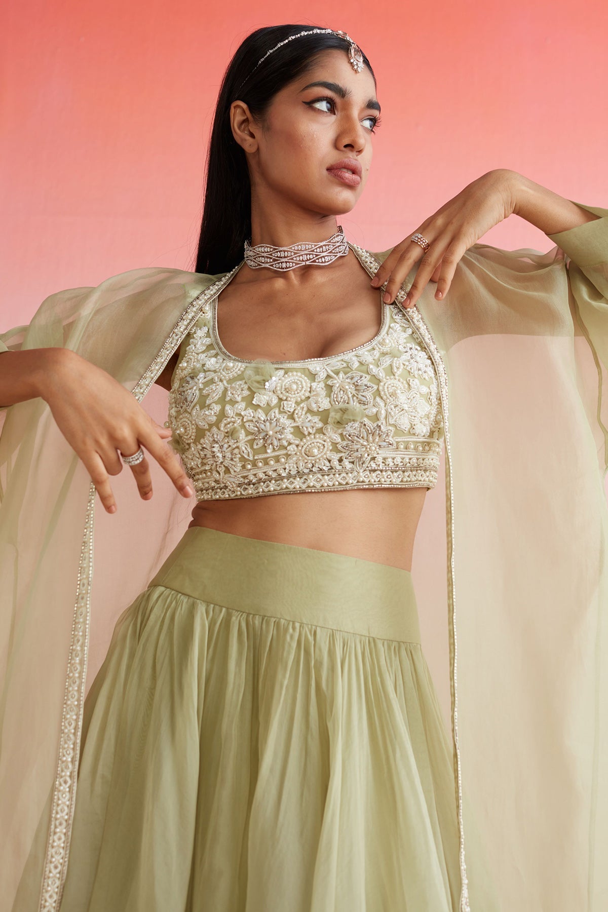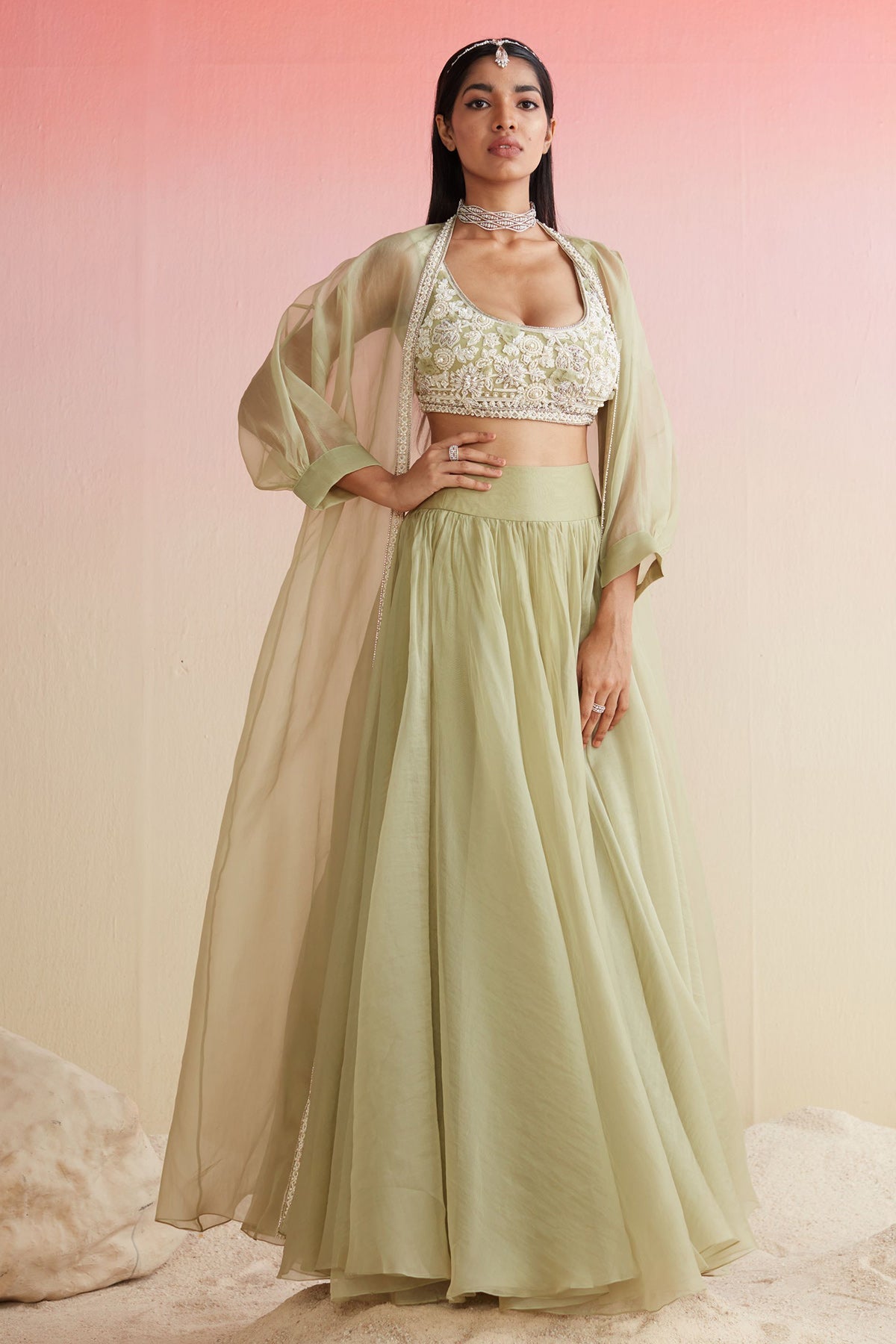 RIDHI-MEHRA-MINT-NET-EMBROIDERED-BLOUSE-WITH-PLAIN-ORGANZA