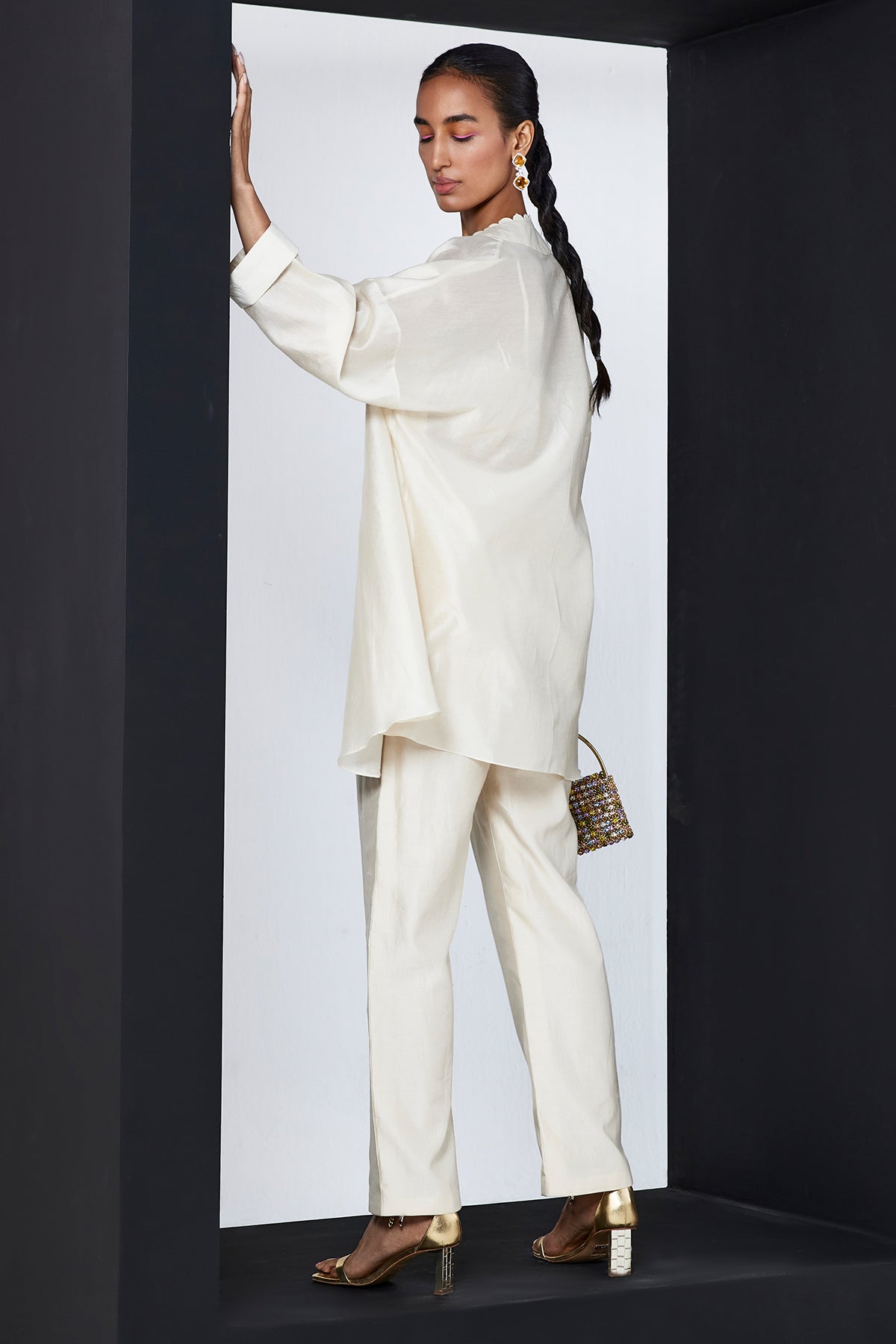 • Fabric: Cape - Chanderi, Bustier - Chanderi, Pants - Chanderi, Belt - Chanderi