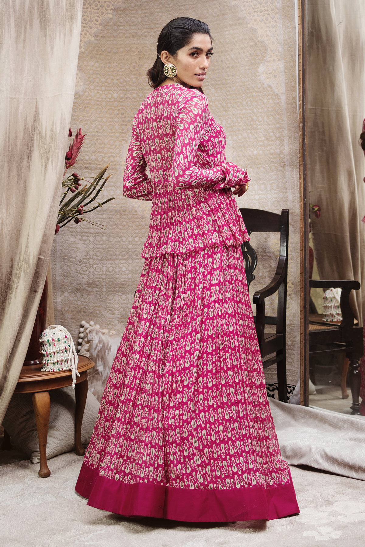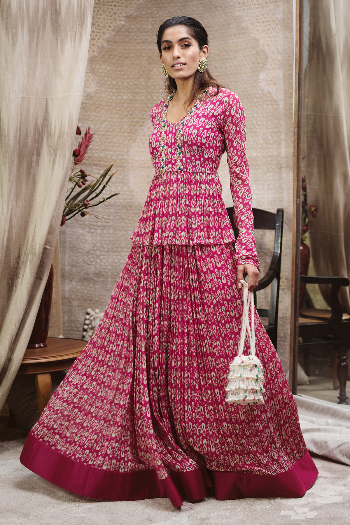 Printed Peplum and Skirt Set with Embellished Neck Line
