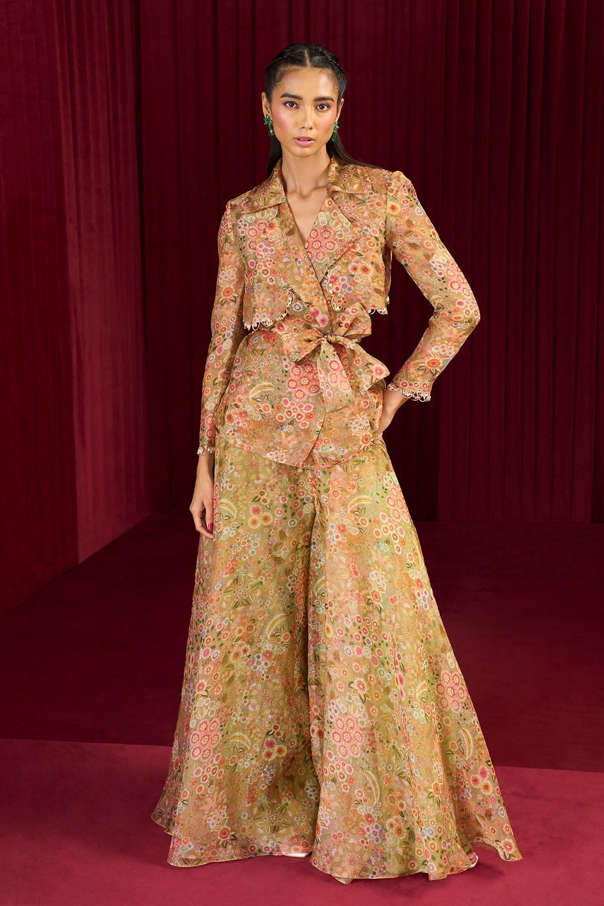 Fabric Details - Jacket - Printed Organza Pants - Printed Organza Belt - Printed Organza