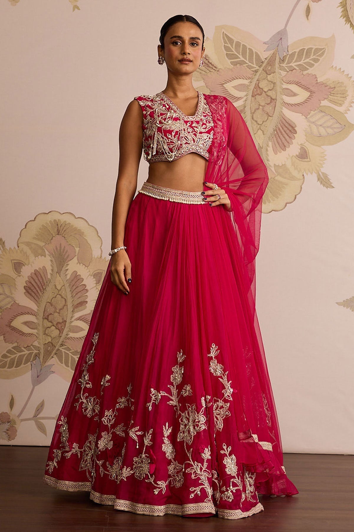 Fabric: Blouse: net, lehenga: organza, dupatta: net,