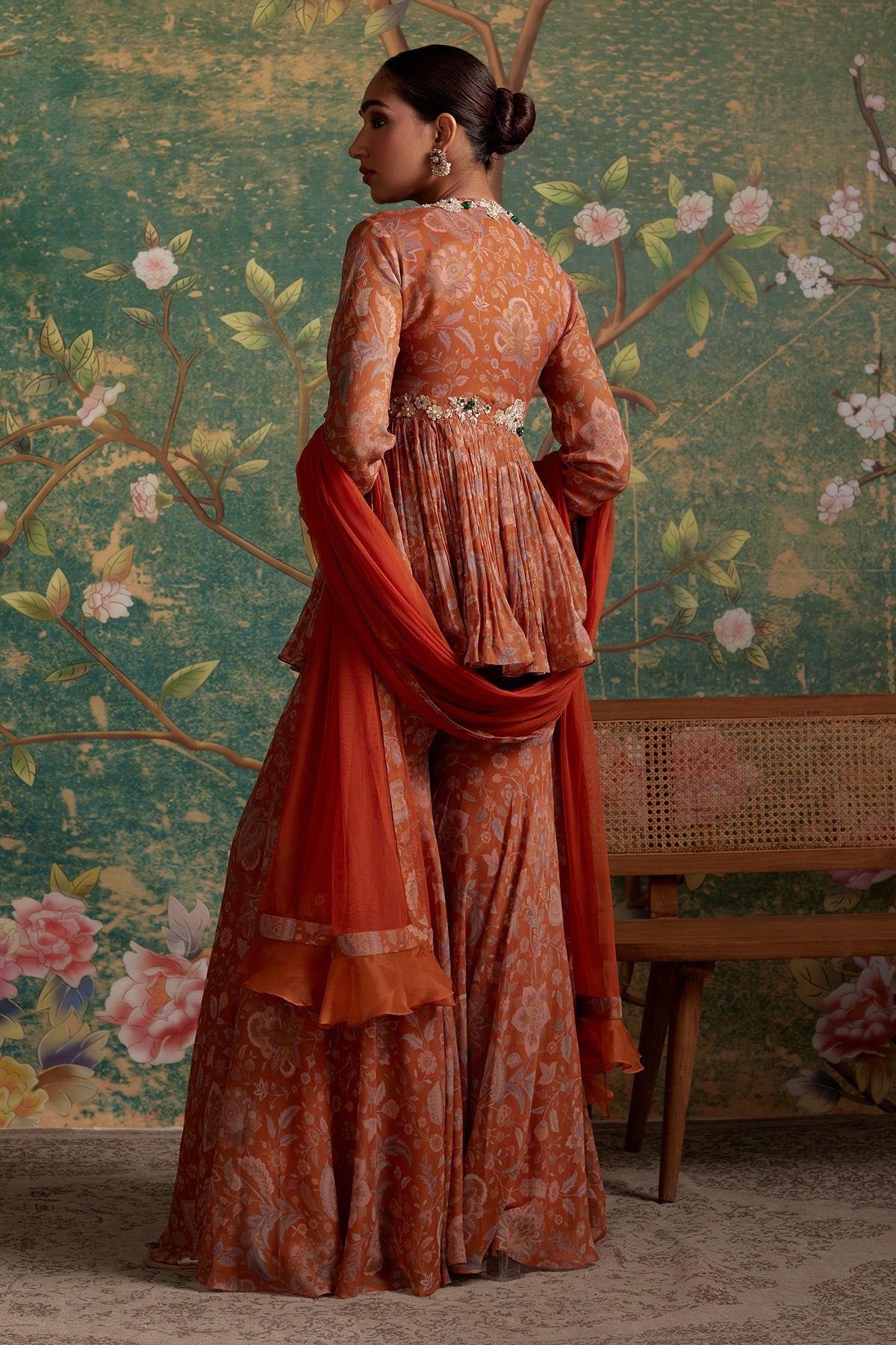 FABRIC DETAILS: Peplum: Chiffon Gharara: Chiffon Dupatta: Net/Organza
