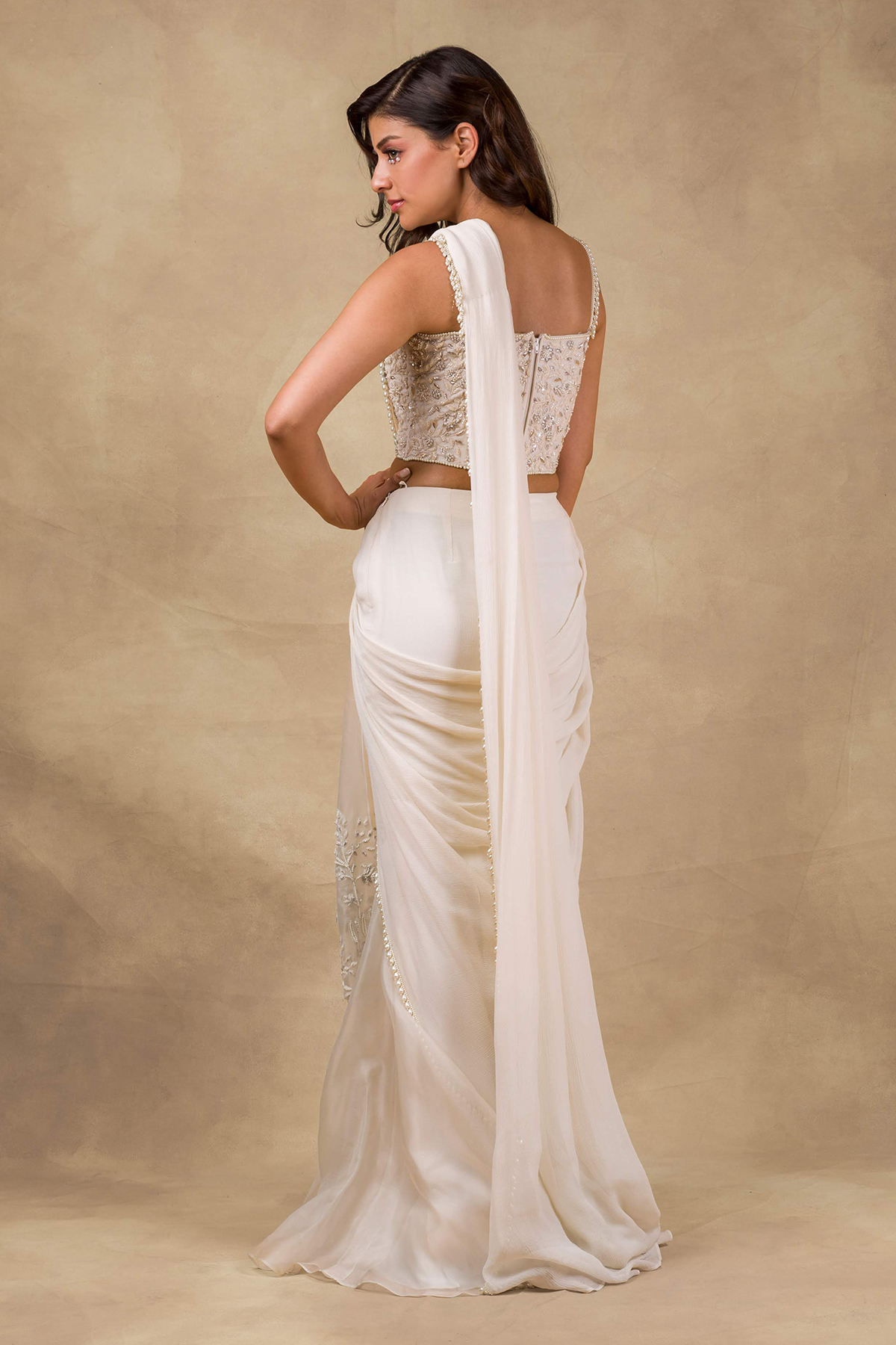Pearl Embroidered Corset with Embroidered Ruffle Saree