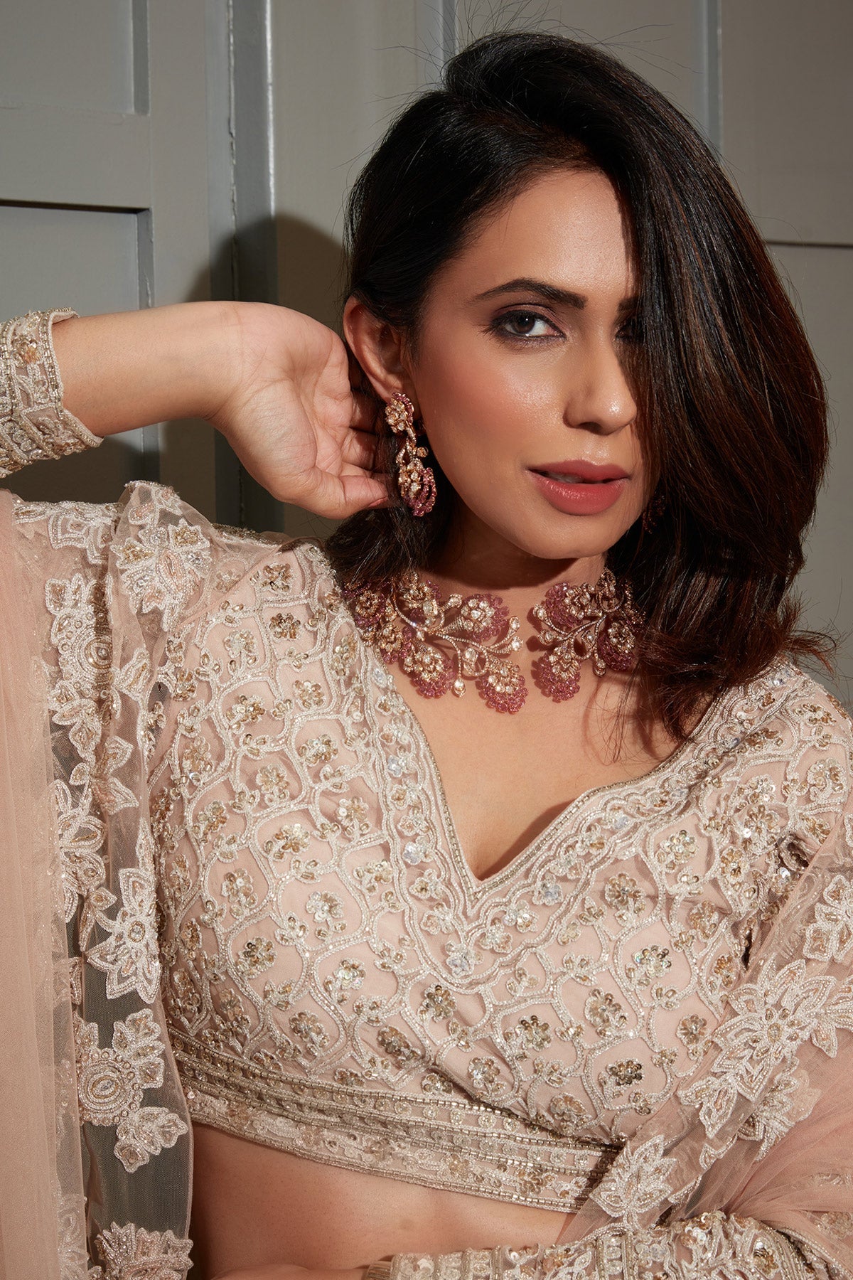 RIDHI-MEHRA-MAHA-CHAMPAGNE NET EMBROIDERED SAREE