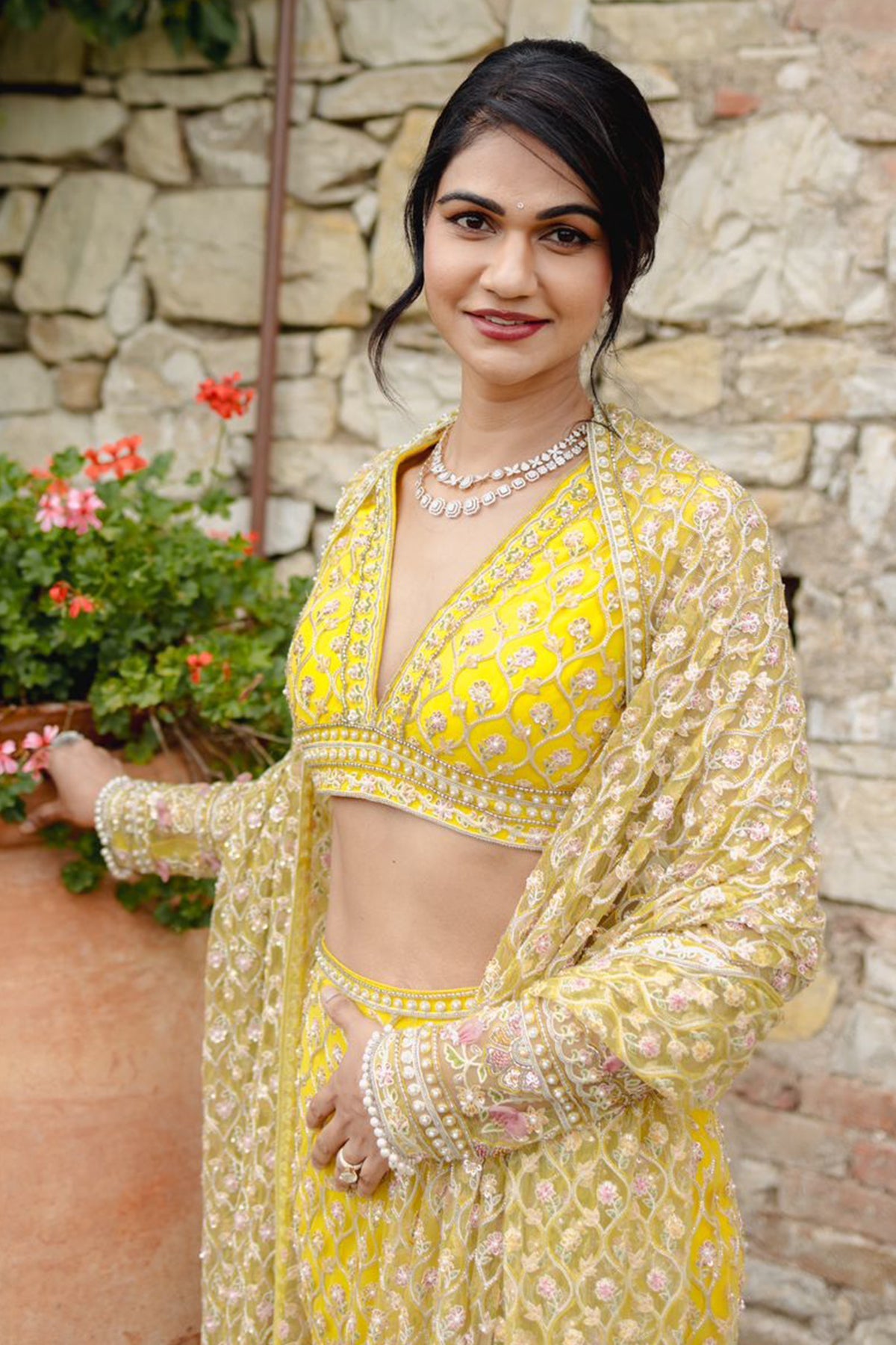 Yellow Net Embroidered Blouse, Saree Skirt With Long Pallu Dupatta
