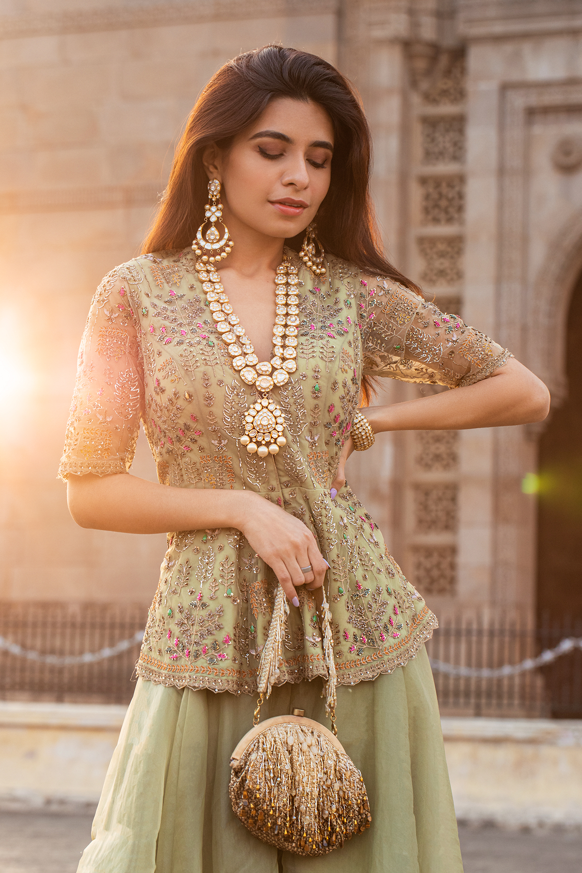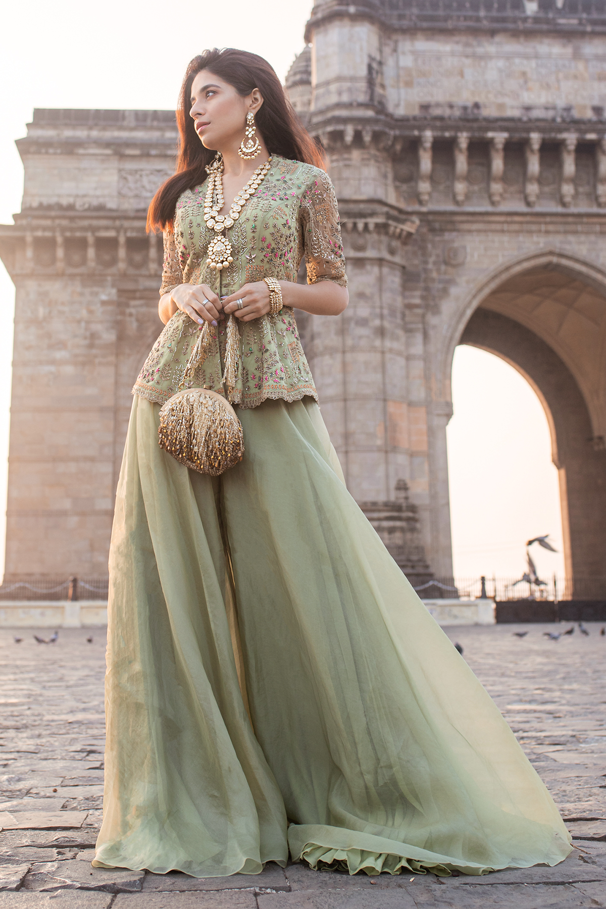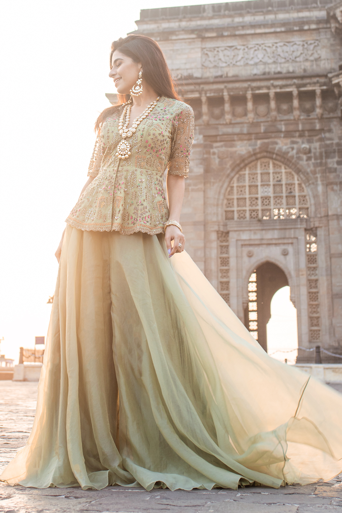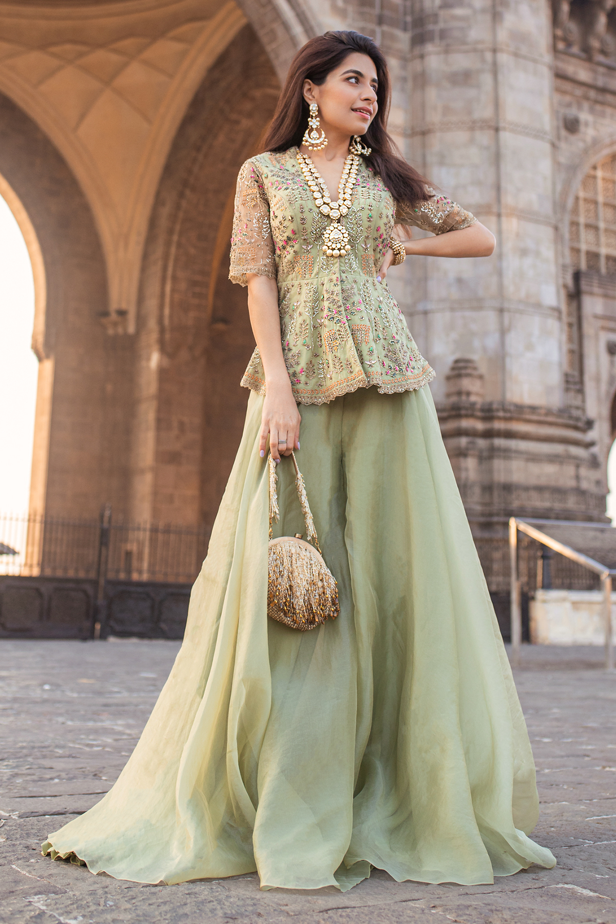 Fabric - Peplum top: Raw Silk, Sharara: Organza