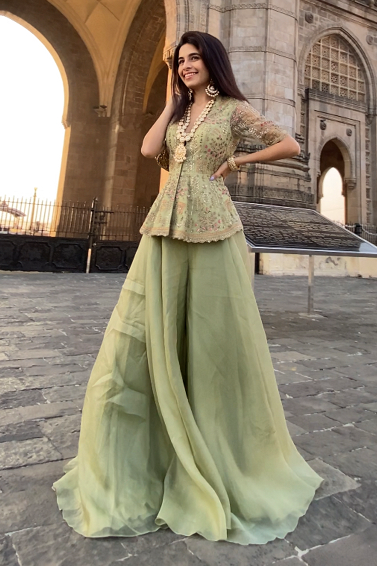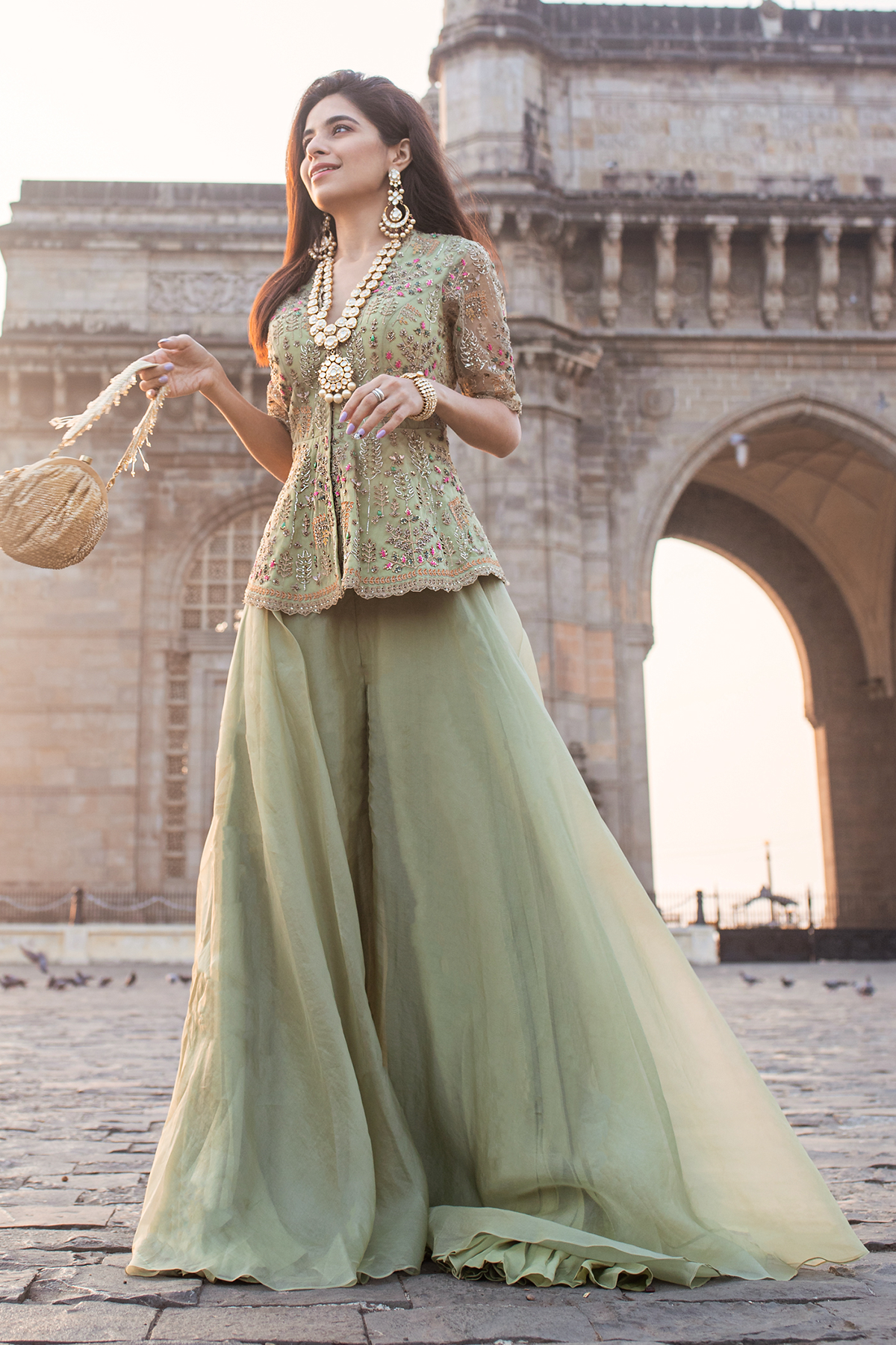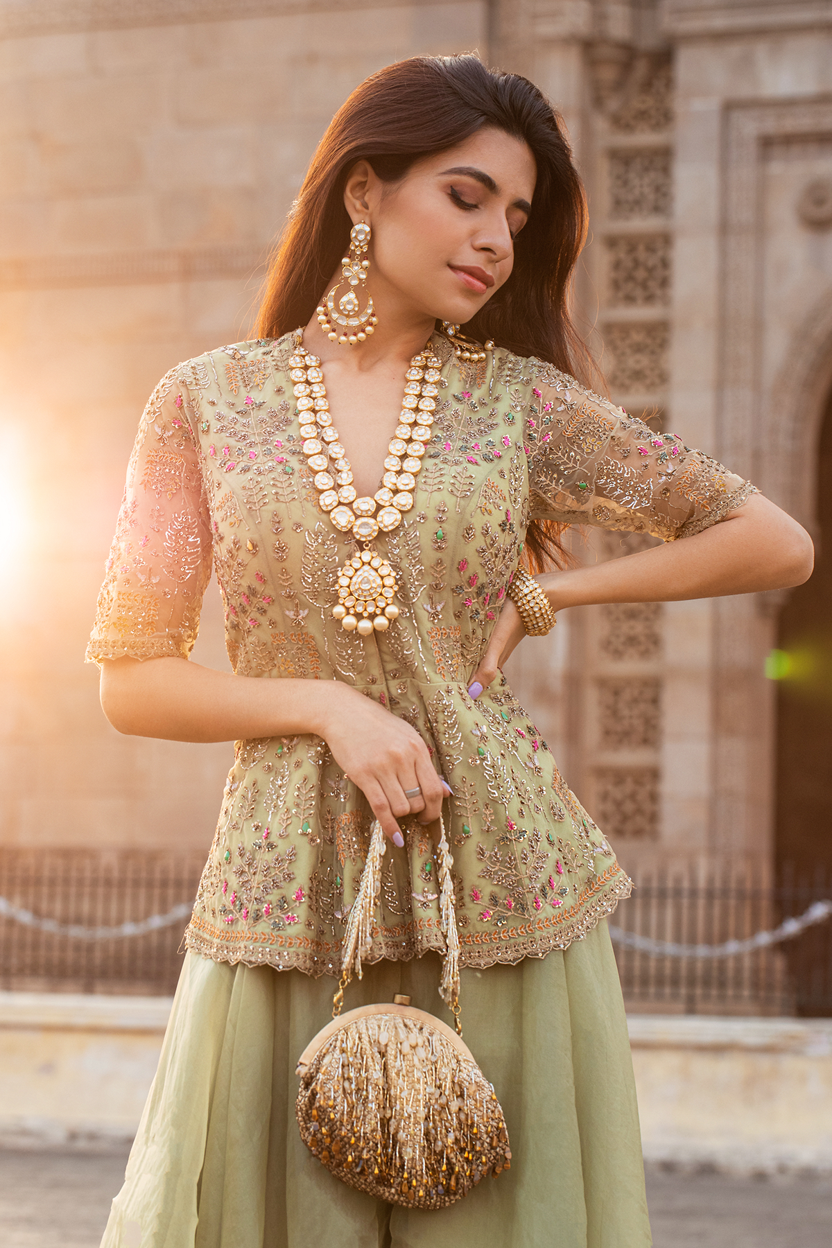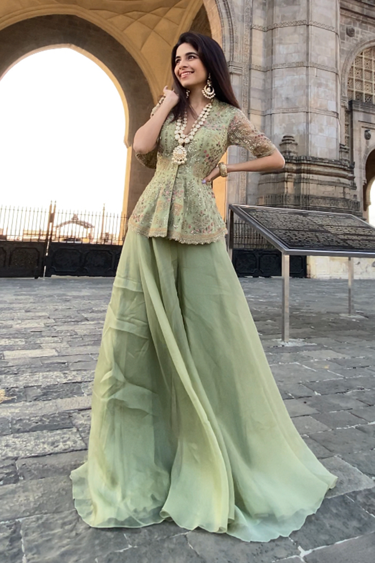 Fabric - Peplum top: Raw Silk, Sharara: Organza
