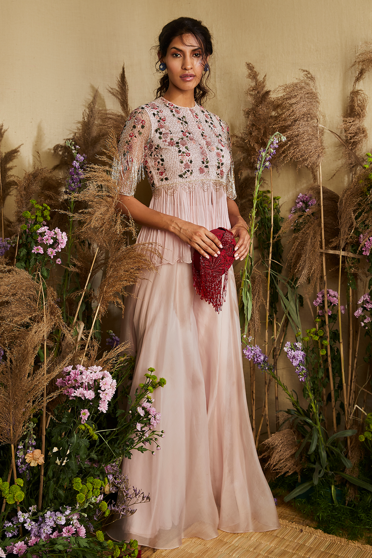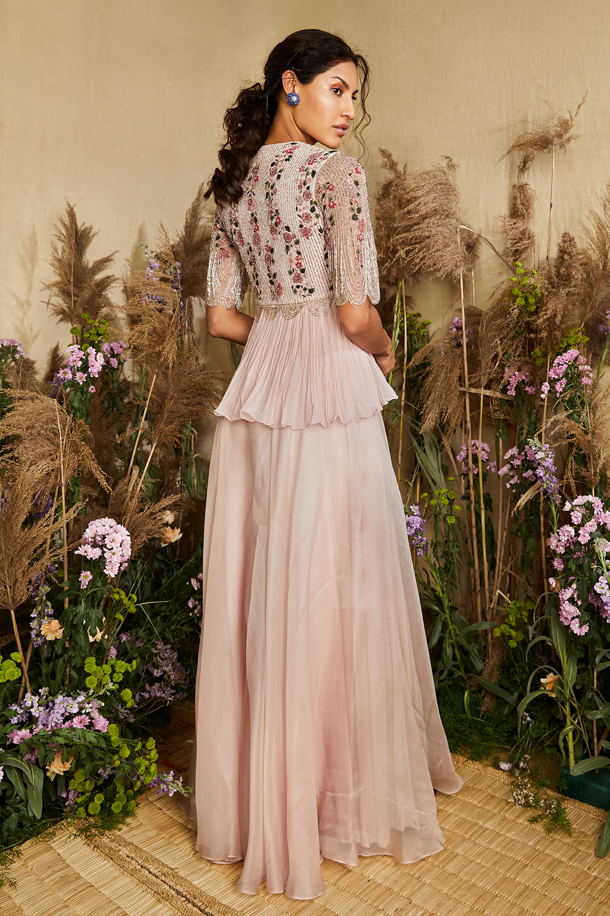 Multicolor Placement Embroidered Peplum with Organza Sharara