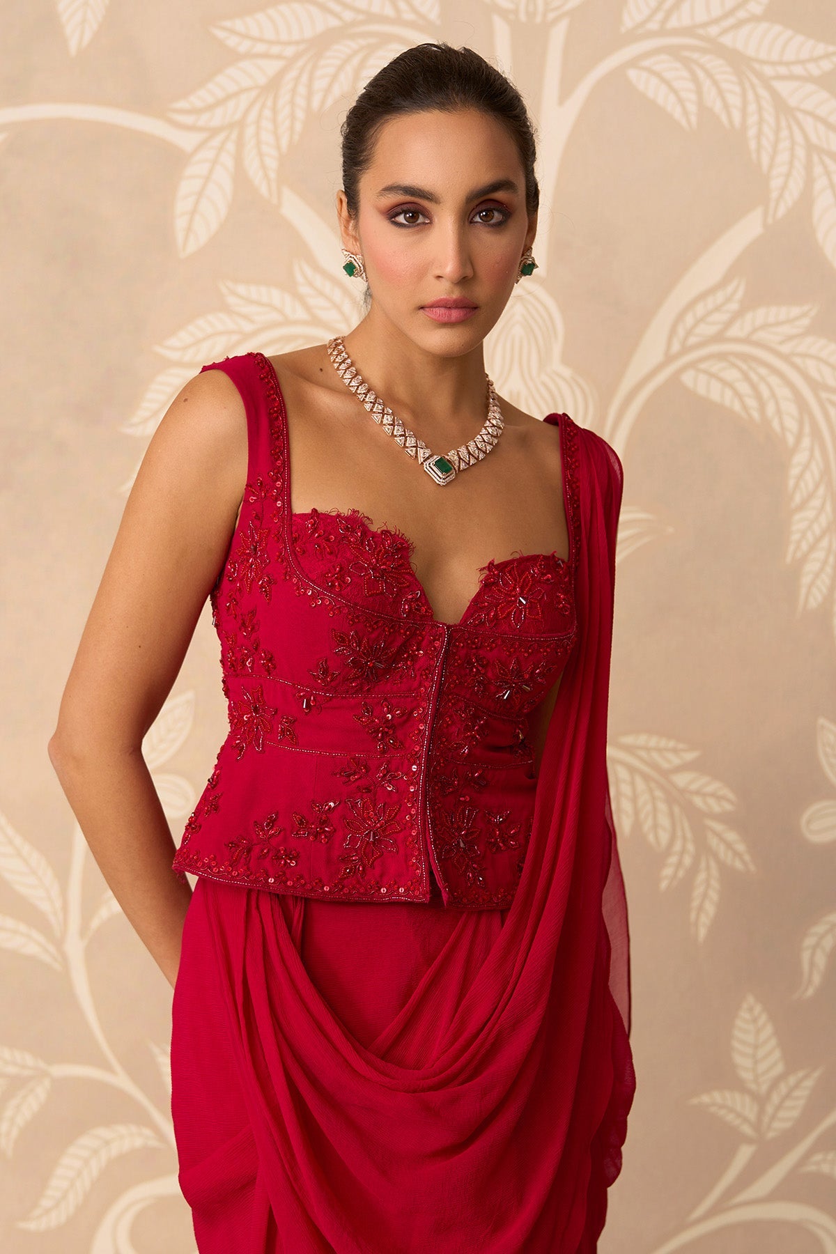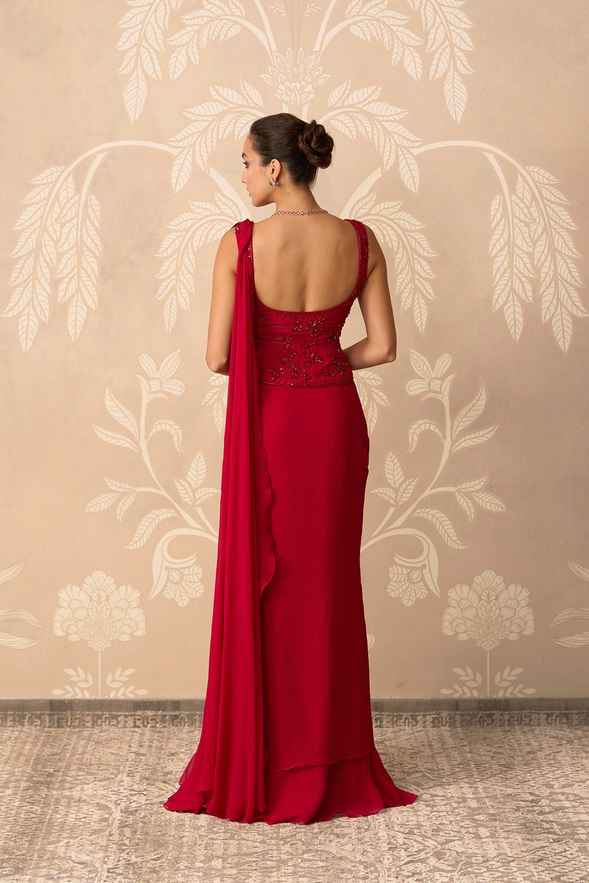 Georgette Embroidered Long Blouse With Draped Stitched Saree