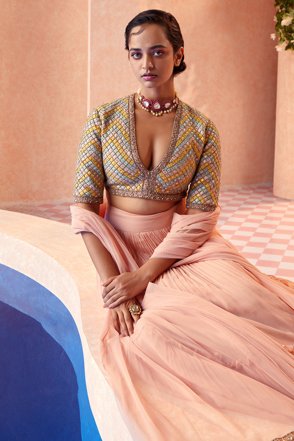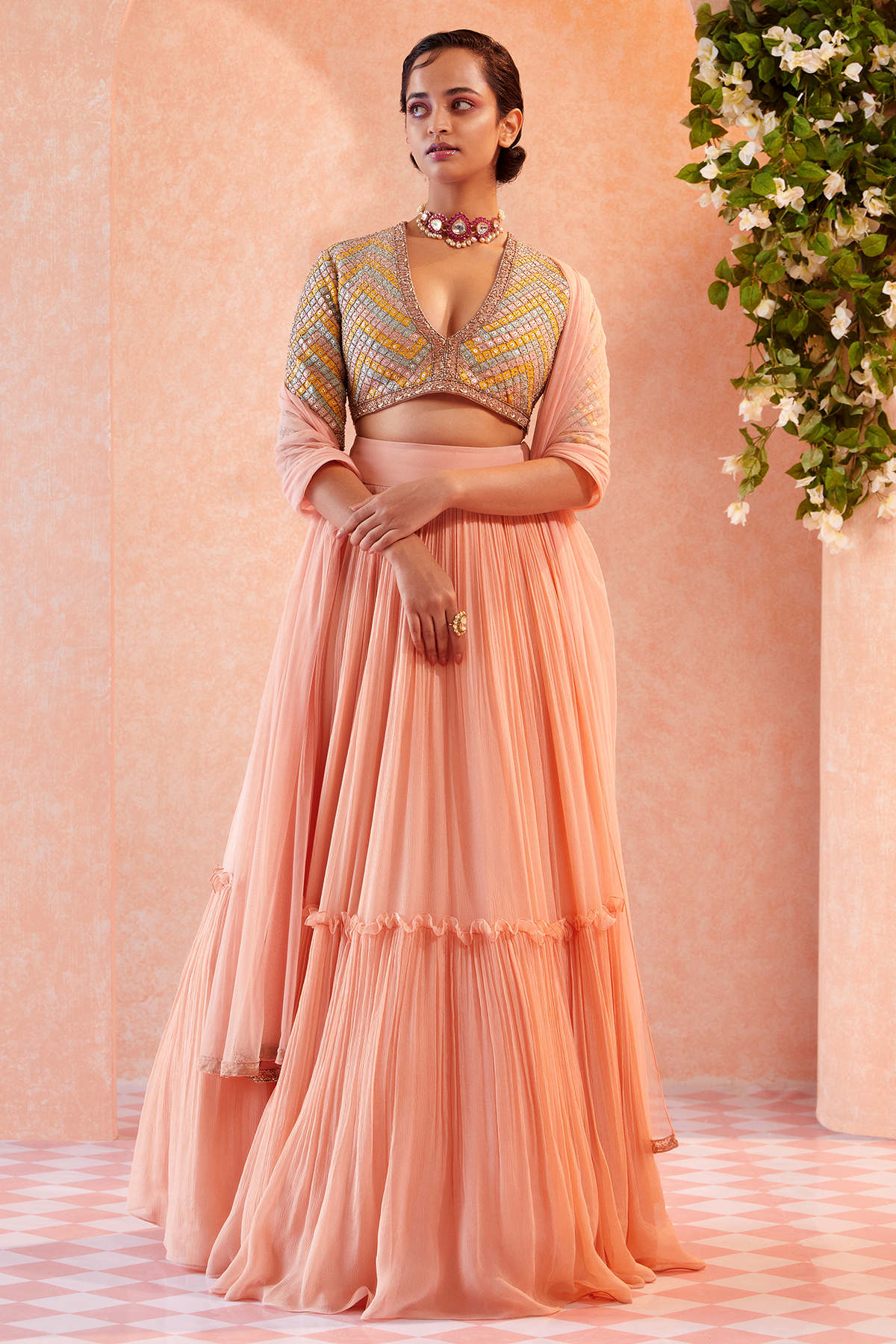 Fabric: Blouse - net, Lehenga - chiffon, dupatta - net